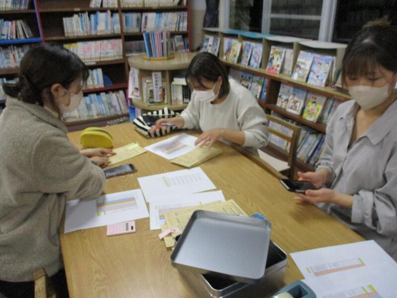 まずはじめに、食券の準備を行いました。ワンシートになっている食券をハサミで細かく切り分け、必要枚数準備した後、集金確認を行いました。事前に集金した金額に過不足が無いか、学年ごとの収入金額はあっているかなど、ダブルチェック、トリプルチェックをしました。
