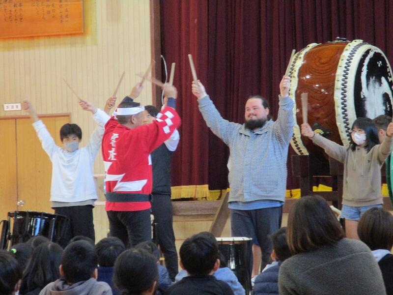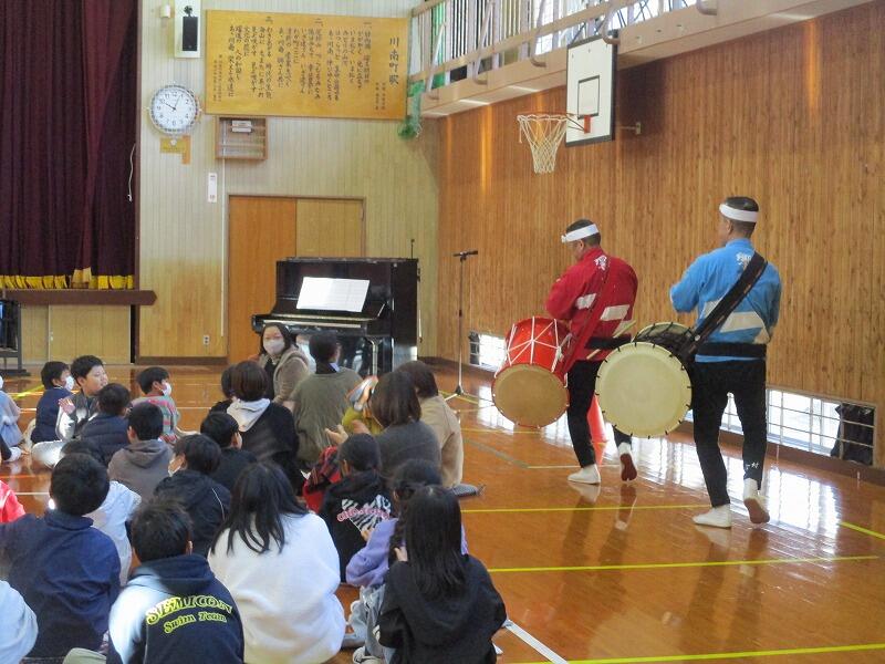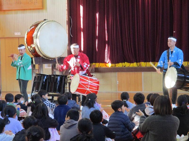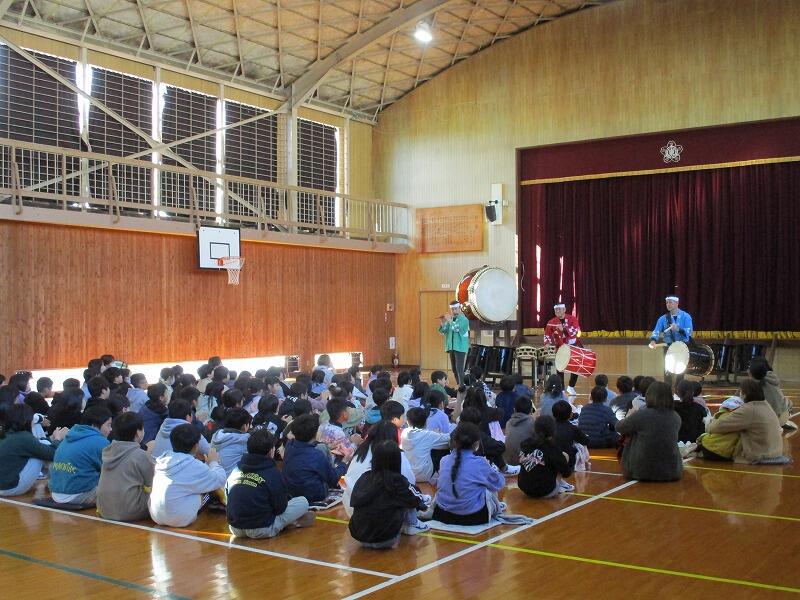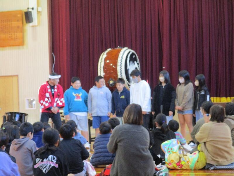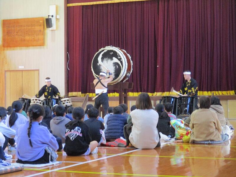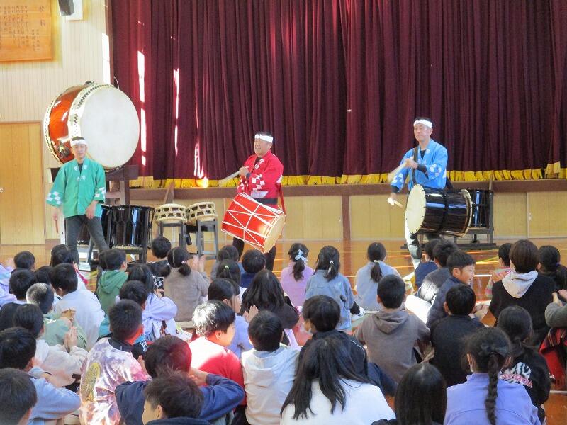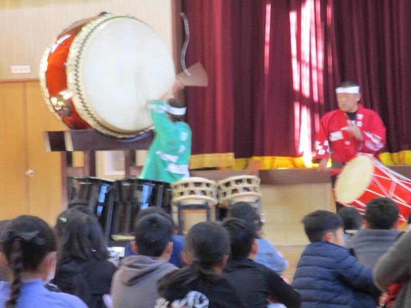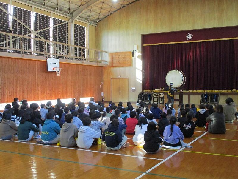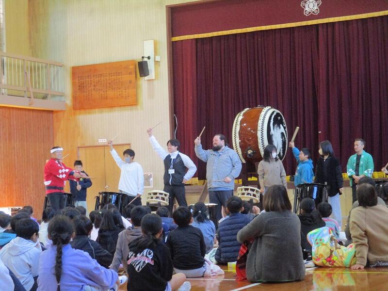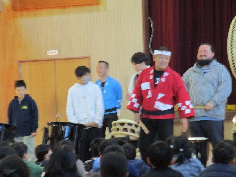和太鼓の生演奏を初めて聞く児童も多く、登場した瞬間から子供たちも私も耳と目が釘付け!!