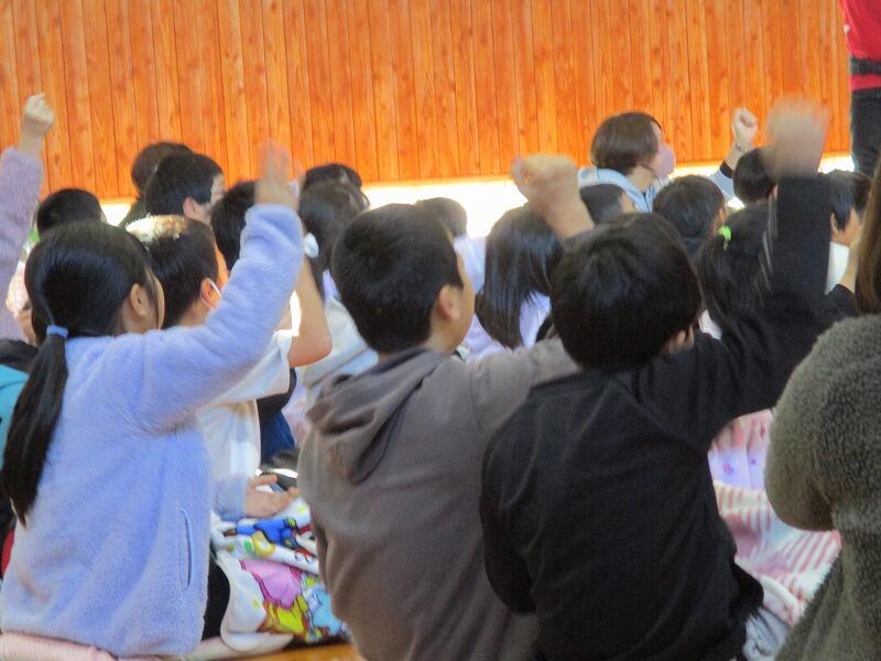 会場のみんなも一緒に手をたたきながらやってみます