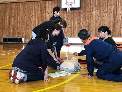 真剣な表情で講師の方の話に聞き入るPTAの皆さんです。PTA保体部の主催で土曜日の昼から心肺蘇生法講習会を行いました。心臓マッサージと人工呼吸、そしてAED の使い方を学びました。ダミー人形に人工呼吸してもなかなか空気が入っていかずに苦労する場面もありました。とっさの時にパニックにならずに落ち着いて処置をするのは難しいだろうねぇ、と言いながら、講師の方に色々と質問して積極的取り組んでいらっしゃいました。