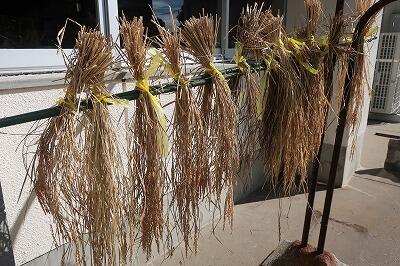 今学校では、刈り取りを行い、乾燥をしているところです。この後、手作業でもみすりをしていきます。このような活動を通して、食糧生産について経験的に学び、食べものを大切にする気持ちを高めてほしいと思います。
