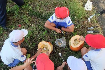 最後は、カボチャの中を見てしっかり勉強しました。カボチャの生長を通してたくさんのことを学んだ活動でした。