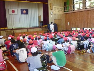 本年度第1回目のどんぐり集会が行われました。どんぐり集会というのは、各学年でこれまで学習したことなどを全校児童の前で発表する集会です。今回は5年生の発表でした。5年生は群読や合奏、合唱などを発表してくれました。担任の先生がお休みで少し心配しましたが、みんな立派に発表できていました。進級してもうすぐ2か月になりますが、高学年らしさが至る所に見られました。
