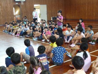 全校児童が集まった体育館は