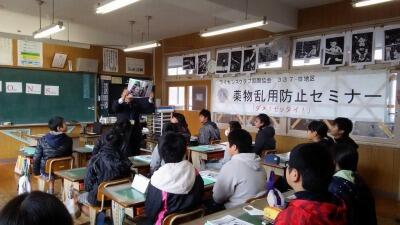 全体指導では、校長先生が講評を行い、担当の先生が学校以外の場所で地震が発生した際の行動の仕方について具体的な話をしました。