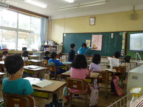 今日から、2年生の新しい担任の先生が着任され、早速授業に入っていただきました。子どもたちは、1時間目は少々緊張しているようでしたが、給食時間がやってくる頃には、新しい先生にも慣れ、先生の肩もみなどをしてくれる子もいました。