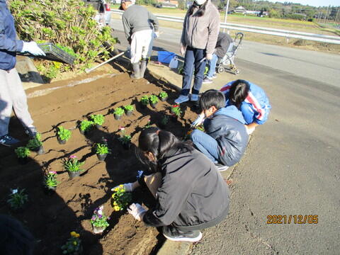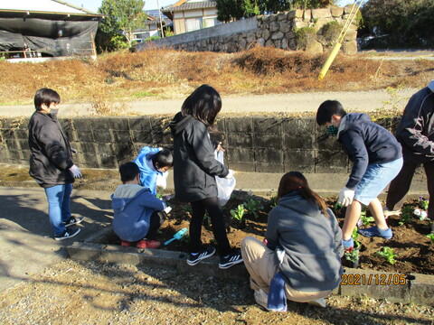 12月5日(日)は、各地区の親子会と長寿会が協力して、東地区の各地区で清掃活動と花植え活動が行われました。本校では、学校協働運営委員会からも地域のために子どもたちが貢献できるよう、全校児童に呼びかけを行いました。