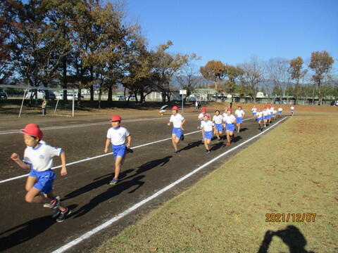 今日は、各学年部に分かれて、持久走大会を行いました。2校時が中学年、3校時が低学年、4校時が高学年でした。各学年の児童の皆さんの一生懸命走る姿がとてもよかったです。1年生では、最後の1州という時にこけてしまった児童もいましたが、泣きながらもがんばって走り切ってくれました。中学年や高学年は、練習時の記録を1秒でも縮めようと一人一人目標を持って走っていました。みなさん、よくがんばりました。