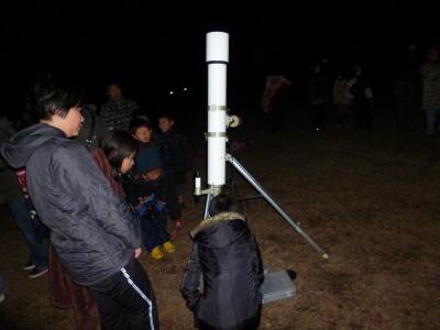 寒い中でしたが、約40名の親子連れが集まり、1時間半ほど星の世界を満喫しました。天体望遠鏡を使った星の観察は初めてだという方が多く、よい体験になったようです。