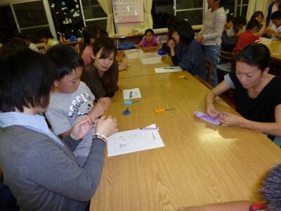 平成27年度の家庭教育学級が始まりました。開級式の後、親子で学ぶ「仲間づくりゲーム」を行いました。前半に親子や近くの人同士での簡単なレクリエーション、後半に親子でのクリップバッタ作りをしました。約50名ほどの参加があり、大いに盛り上がりました。本年度は、『親子で学ぶ』をテーマにした研修会を年間で5回ほど計画しています。楽しい研修会になることを願っています。
