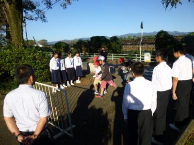 川南町全体で取り組んでいるニューフロンティア研究会徳育部会の取組として、小中連携のあいさつ運動が行われました。