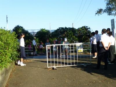 制服姿の先輩方からのあいさつに、小学生は少し照れながらでしたが、元気なあいさつを返していました。