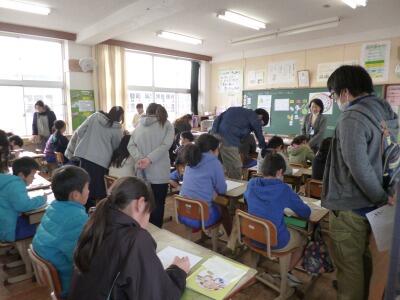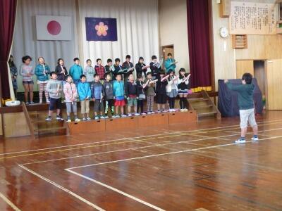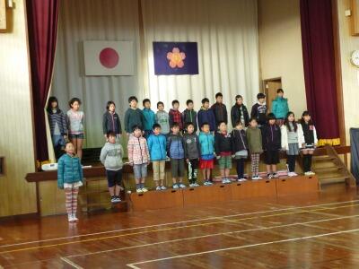 1年生から6年生までの活動班(どんぐり班)で練習しました。
