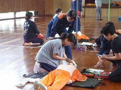 救急法講習会は、東児湯消防組合消防川南分遣所の方々を講師としてお招きし、心配蘇生法の講習が行われました。