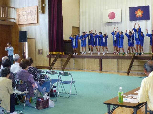 東小の4年生と5年生19名が「東っ子ソーラン」を披露しました。熱心に昼休み時間に練習をしてきたので、みんな元気よく踊ることができました。また、落語やバトンを披露してくれた子どもたちもいました。高齢者の方々も大変喜ばれている様子でした。休日でしたが、参加してくれた子どもたち、どうもありがとうございました。