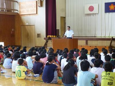 2学期が始まりました。 新しい床の体育館での始業式では、4年生の児童2名が2学期の目標を発表してくれました。10月9日の運動会やその他の行事が続く学期です。児童126名全員元気に2学期も過ごしてほしいと思います。