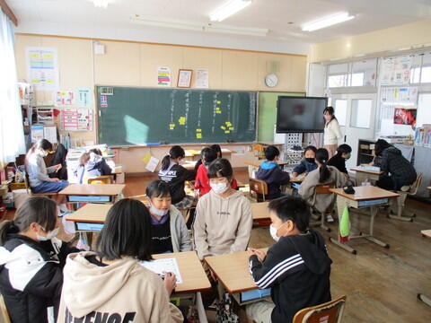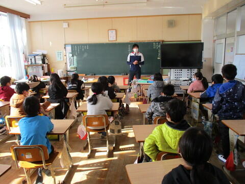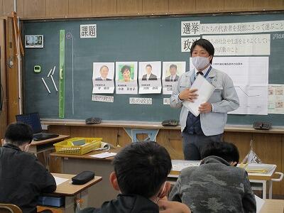 1月20日、町総務課(選挙管理委員会)の方が来校し、6年生に向けて選挙出前授業が実施されました。授業では資料を基に川南町の過去の選挙の様子、若者の投票率が低いことなどを聞くことができました。また、全国規模の国会議員選挙に掛かる費用は?というクイズでは、答えが約700億円だとわかると、児童からは驚きの声が上がっていました。ちなみに、東京スカイツリーの建設費用は約650億円とのことで、それ以上に費用が掛かることも知りました。