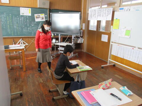 令和2年度の3学期がスタートしました。放送による始業式では、6年生2名による作文発表がありました。今年の目標とする言葉を紹介し、中学生になるまでにがんばりたいことを発表してくれました。始業式の後は、早速、冬休みの宿題の丸つけや係活動決めなど学習に取り組んでいました。各学級の様子を紹介します。
