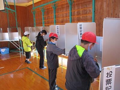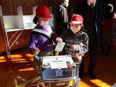 また、昼休みには全校児童を対象に、実際の選挙で使用する投票箱等を使い、「給食メニュー総選挙」が行われました。