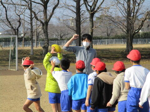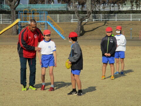 21日、西村さんに講師を依頼し、4年生にタグラグビーの指導をしていただきました。