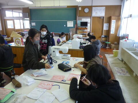 現在6年生は、在校生のために、机・いすの消毒用布巾を内緒で作成しています。在校生一人一人に気持ちを込めて手縫いをしたりミシンで縫ったりして、作成しています。お別れ集会の時に完成できるようにがんばってほしいです。