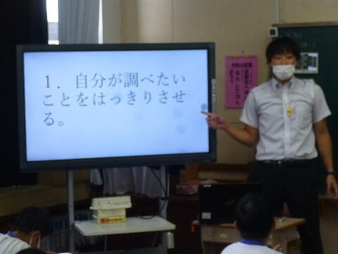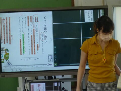 他学年の先生方が参観して、ICT機器を授業の導入、展開、終末のどの場面でどのような活用をしたときに、学習の効果が上がるのか5年生の授業を通して検証しました。今日の5年生は、終末の場面でタブレットを使って学んだことが理解できているのか確認する取組を行いました。実際にやってみると、思っていたように活用できない場面もあり課題を見つけることができました。今後も他の学年の授業を相互に参観しながら、よりよいICT機器を活用した学習の研究を深めていきたいと思います。