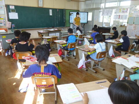 今日は、1・2年生の体育、3年生の国語、4年生の算数の授業の様子を紹介します。