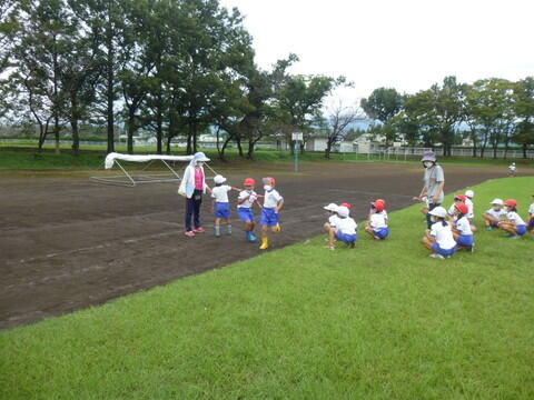 今日は、朝雨でしたが午前中は曇りだったので、運動会の練習をどの学年も運動場でできました。3校時は、1・2年生が徒走やリレーの練習をしていました。リングバトンをもって小さい体ながら運動場の半周を一生懸命走って、バトンパスをしていました。
