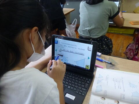 <タッチペンを活用して問題の中の大切な部分にアンダーラインを引いています。>