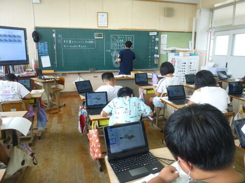 先生のパソコンから、児童のパソコンへ問題を配付して児童が解答したものを先生のパソコンに再度回収したりして授業に生かせるかやってみました。先生のパソコンと児童のパソコンがうまくつながらない不具合があることも分かり、不具合が出た時の対処法も考えておく必要があることが分かりました。授業を通して活用していくと、よい面もありますが不具合が出てかえって効率の悪い授業になることもあることも分かりました。今後どのように使っていけばよいか、また新たな課題が出てきました。