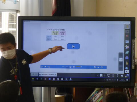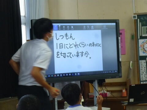 今日の1校時に、3年生のICT相互授業を行いました。3年生は、来週のスーパーマーケット見学に向けて、どのようなことを質問するかを考える学習でした。担任が事前に準備していたスーパーマーケットの写真をタブレットで確認した後、特に質問してみたい写真を2枚ほど選んで質問を考え、タブレットのカード機能を使って質問を書き込んでいました。初めて使う機能だったので、担任がやり方を説明しながら進めました。タブレットで質問カードができたときには、子ども達はとても喜んでいました。見学の時にもタブレットを持っていき、写真を撮ったり書いた質問を確認して質問したりするそうです。学習のまとめをした後、子ども達は、早く見学したいとつぶやいていました。
