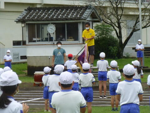 今日は、1回目の運動会全体練習を行いました。今日は、開会式の練習を中心に行い、最後に、団長リーダーによるエール交換の練習を行いました。暑い中でしたが、みんなしっかりとした姿勢で体育主任の先生の説明を聞いたり、校長先生の話を聞いたりしてがんばっていました。