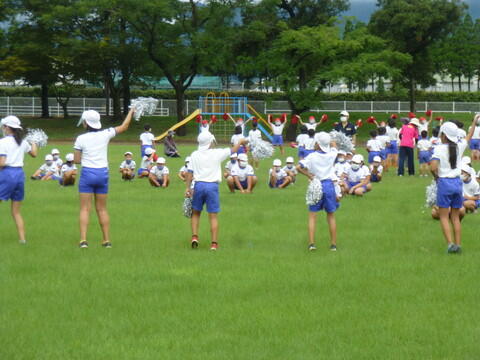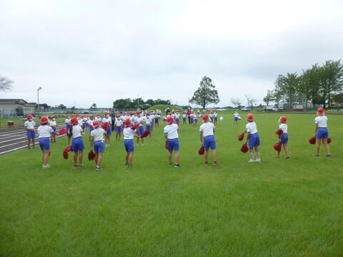 今日は、昨日できなかった運動会全体練習を行いました。午前中、雨が降らなかったので、予定通り行うことができました。練習内容は、閉会式の練習・ラジオ体操の練習と応援の練習でした。