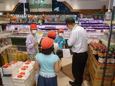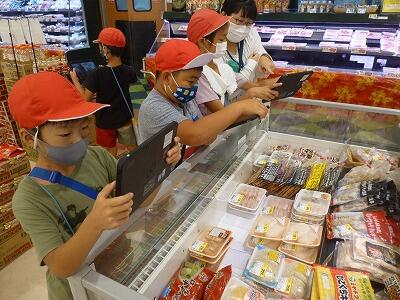 9月17日の事前学習を受けて、21日(火)、3年生は町内のスーパーマーケットである「パントリーけいすけ」さんの見学に行きました。コロナ禍であるため、全ての施設は見学できませんでしたが、店内を中心に、店長さんの話を聞いて学習を開始しました。児童は持参したタブレットで、品物の並べ方、表示の様子を写真に撮ったり、グループごとに店長さんに質問したりしながらお店の様子や働く人の様子などを観察しました。普段も行くことのあるスーパーマーケットですが、新たな発見もあったようです。