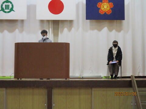6年生の2人が「座右の銘」を宣言し、今年がんばることを話してくれました。
