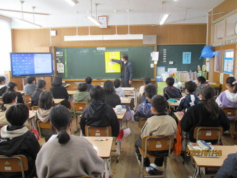 今日は、東小学校の地域貢献活動第3弾として、都農マラソンコースになっている道路清掃の意義について校長先生より、5・6年生の児童に話をしてもらいました。