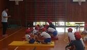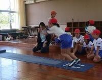 どんぐり班(全校縦割りグループ)で体力テストを行いました。どんぐり班の上級生が下級生を見守りながら、アドバイスをする姿が見られました。おかげで安全にスムーズにテストを終えることができました。