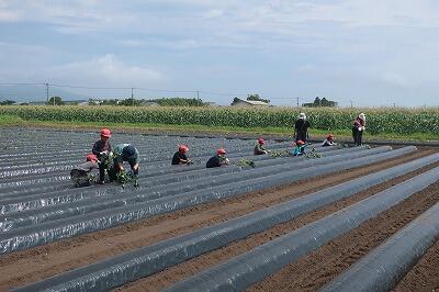 芋づくり名人の江藤さんの指導を受けて、芋植えに挑戦です!