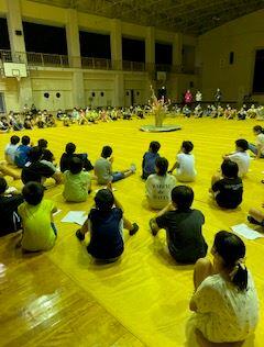 昨夜は、江平小5年生116名、東小5年生26名が体育館に集まり、キャンドルファイヤーが行われました。キャンドルの炎を見つめ、静かに過ぎる時間の中で、来年度は最上級生になること、友だちのこと、将来のこと等、考える時間になったようです。