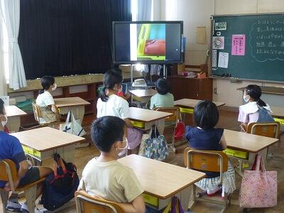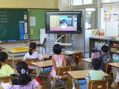 この日は1校時に始業式を行いました。体育館には集まらず、Zoom活用による始業式としました。子供たちは体育館で行うのと同じように、教室で画面を見ながら話をしっかり聴くことができました。2名の代表児童、しっかりと2学期頑張ることを話すことができました。また、校長、そして各担当が2学期の学習や生活について話をしましたが、特に意識づけを図ったことは、やはり、感染症対策としてのマスク着用、検温、密を避けること等についてでした。今後、感染が拡がらないこと、収束に向かうことを切に願います。