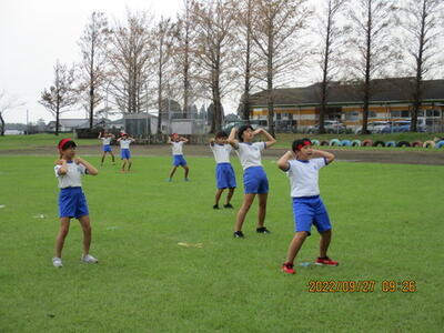 今日は、運動会前の最後の全体練習をしました。はじめに運動会実行委員長の挨拶を行いました。その後、リーダーによるエール交換と各団の応援練習を中心に行いました。応援練習中に雷が鳴りだしたので、早めに応援をやめることになりましたが、声を一生懸命に出して各団応援練習をがんばっていました。応援練習の最後には、団長が運動会に向けての想いを各団の仲間に伝えました。本番は精一杯力の限り取り組んでほしいです。