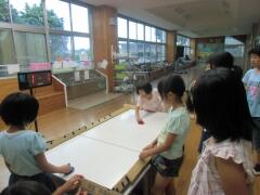 昨日の朝は、雨が降る寸前、ぎりぎりセーフで朝の運動遊びができました。縦割り班ごとに、平均台じゃんけん、ドッジボール、Sケン、子とり鬼遊びをしました。