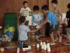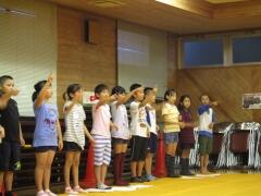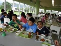 2日間雨模様でしたが、どちらも屋外で活動できたそうです。左上の写真は「追跡ハイキング」、右上は「キャンドルのつどい」での発表の様子です。中央左は、「フィールドアスレチック」の様子です。どの写真も、生き生きと活動している様子が伝わってきます。お腹もすくのでしょう。もりもり食べていますね。