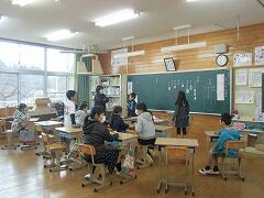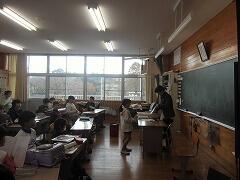 さて、写真は2学期終業日の様子です。都合で昨年内にお知らせできませんでした。写真左上は、4年生教室で「あゆみ」をもらっている様子です。担任から、一人一人に2学期がんばったことを聞きながら受け取っていました。後の2枚は、教室と廊下にワックスがけをしている様子です。本校では毎年行っており、床がまた一段ときれいになりました。