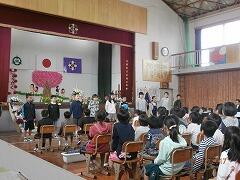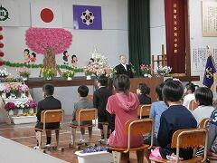 男子3名、女子9名、計12名の新入生が入学してきました。約50分間の式でしたが、新入生はずっと立派な態度で式に臨むことができました。また、教科書を代表で授与される児童と代表の言葉を述べた児童もすばらしかったです。