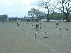 6年生が、体育で「ハードル走」を行いました。今日は第1時で、50m走のタイムを計測した後、ハードルの高さとインターバル(ハードルの間隔)の違う3つのコースを自由に走って楽しんでいました。跳び越す楽しさに加え、担任から技能の指導があった後は「速くなった気がする」と、技能や記録の向上に対する楽しさも見出していました。