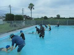 本日は曇り空でしたが、湿度と水温は高かったので全学年プールでの学習ができました。1・2年生は「水遊び」です。楽しく遊ぶ中で、水に顔をつけたり力を抜いて浮いたりすることを身に付け、3年生以上の「水泳」学習へとつなげていきます。