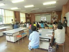午後からの4校時が参観授業で、1・2年生はプールで「水遊び」、3年生は保健で健康な生活について、4年生は養護教諭とのTTで歯の磨き方を学習していました。5・6年生は、外部講師をお招きして「スマートフォン」の正しい使い方を学びました。