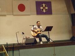 日南市からは、荒木務さんがお越しくださり、アコースティックギターで盛り上げていただきました。アンサンブルを披露してくださった皆様、中学校の吹奏楽部の生徒たち、和太鼓グループ「漲」の方々、皆様に今年もすてきな演奏をしていただきました。