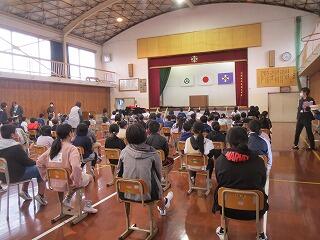今日は、初めて全校での卒業式練習を行いました。歌や「別れの言葉」の練習を行いました。